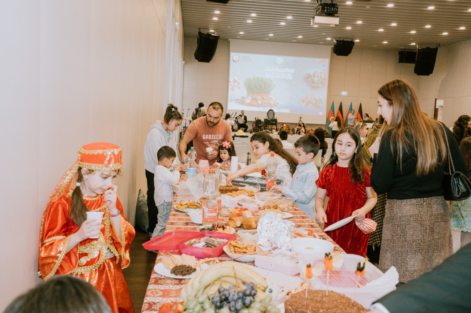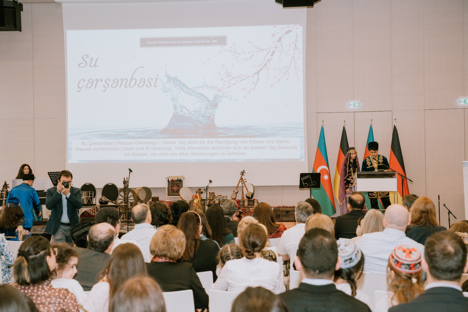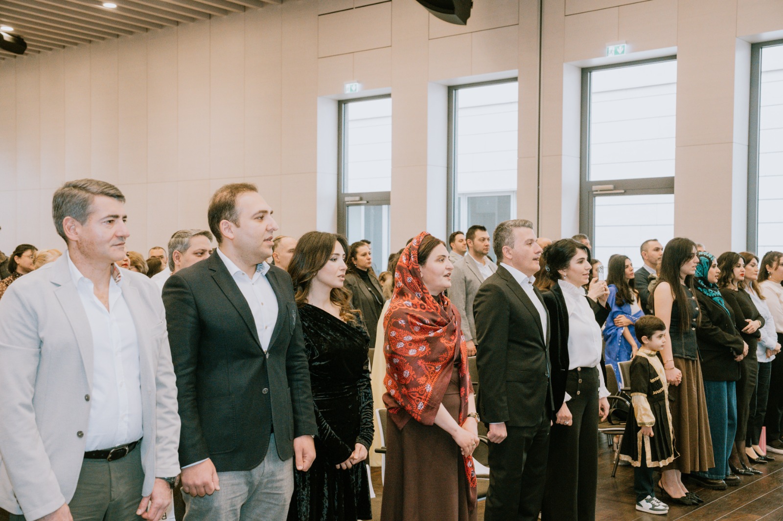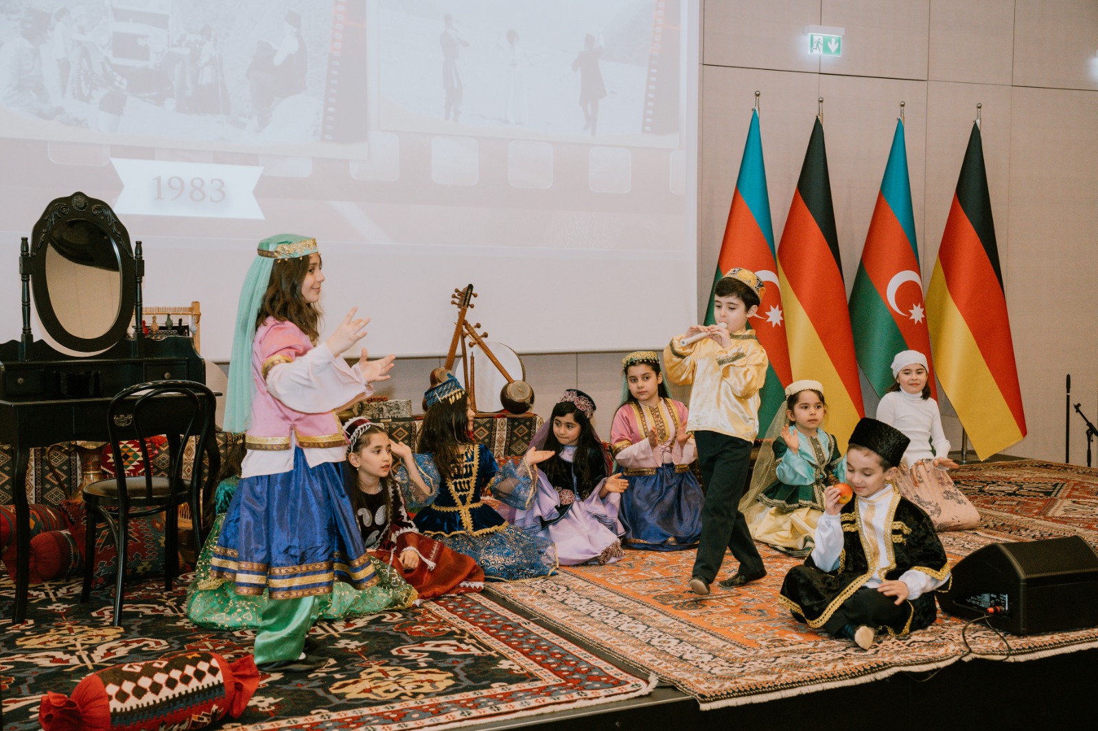 Die Veranstaltung begann mit der Aufführung der aserbaidschanischen Nationalhymne durch aserbaidschanische Kinder, die an den Muttersprachkursen des Kulturhauses Khari Bülbül teilnehmen.