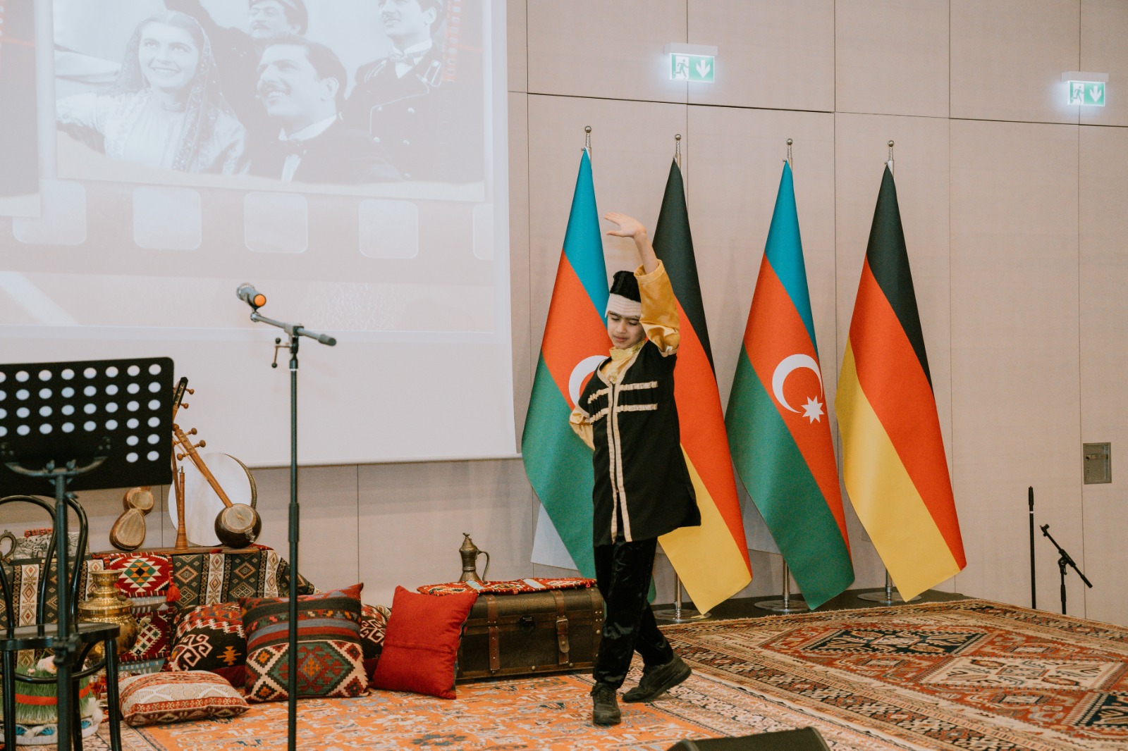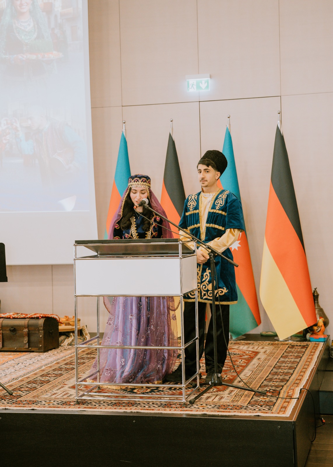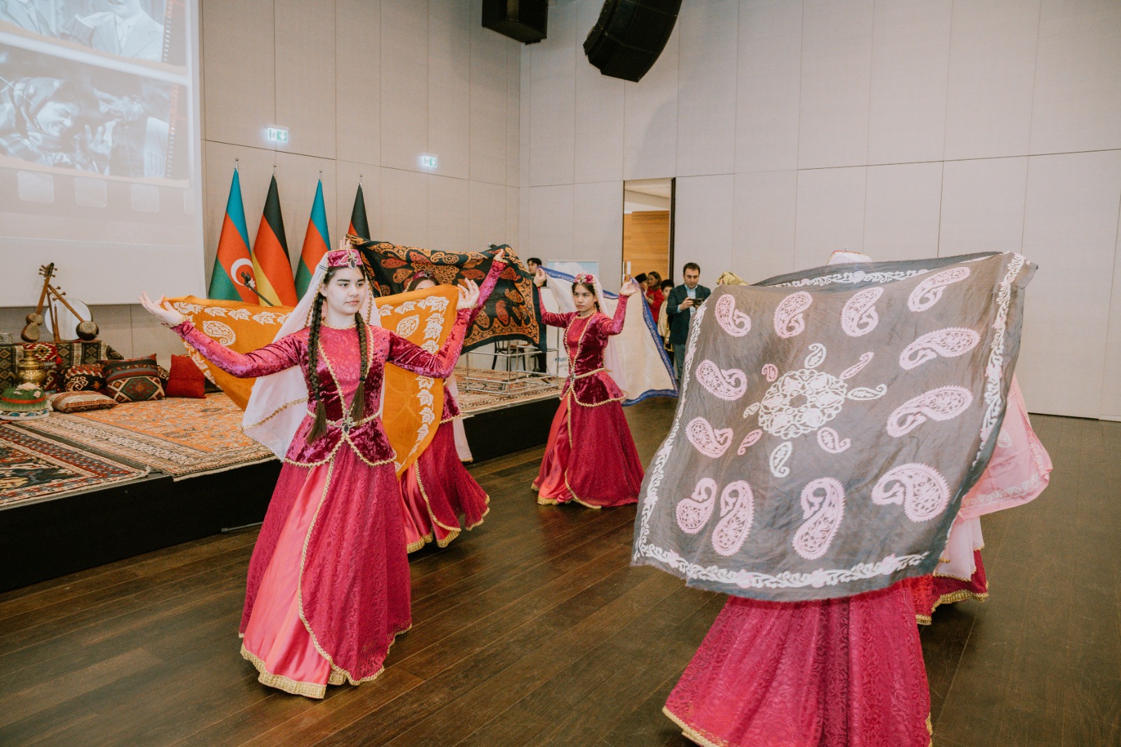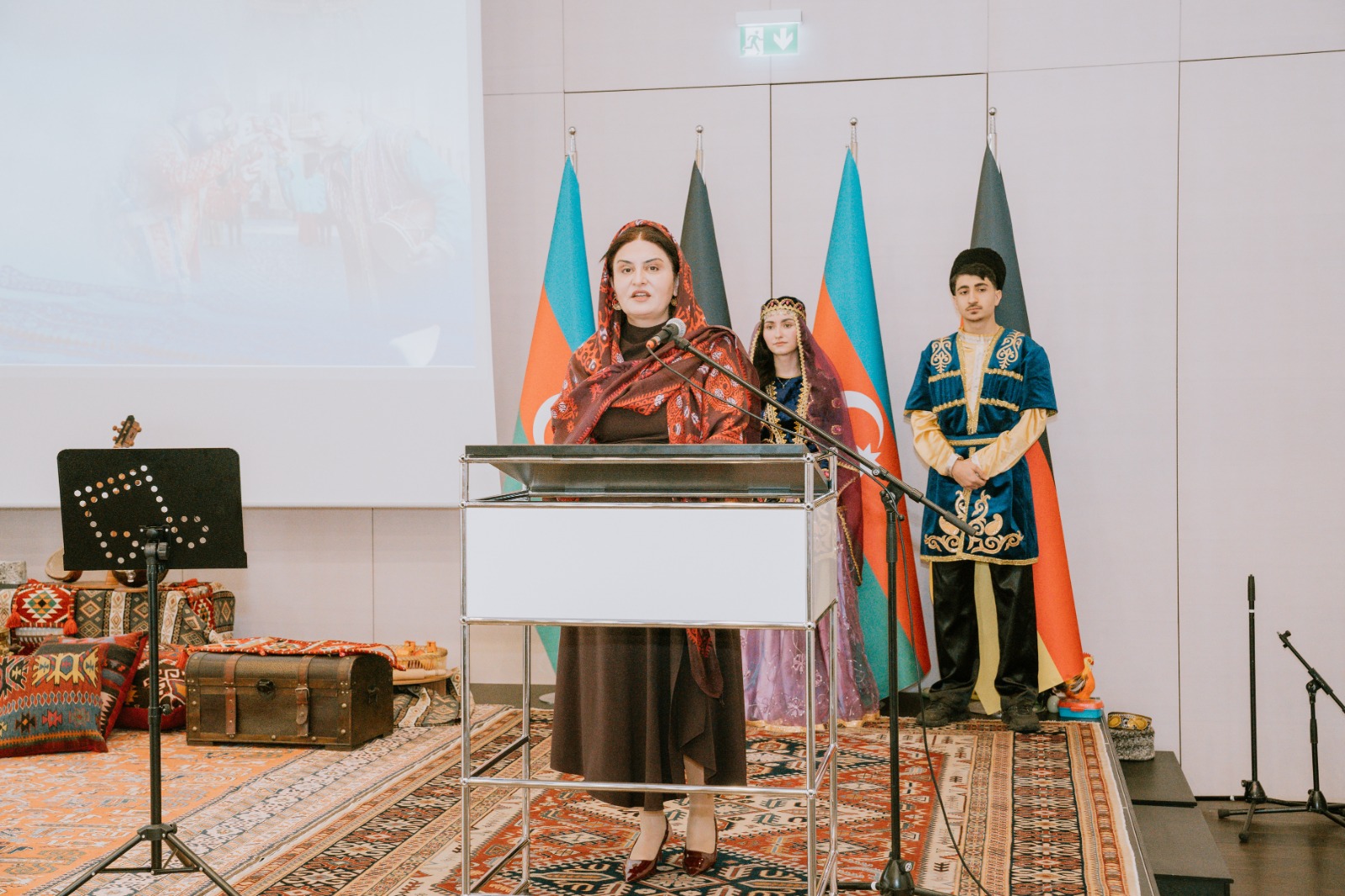 Die Veranstaltung begann mit der Aufführung der aserbaidschanischen Nationalhymne durch aserbaidschanische Kinder, die an den Muttersprachkursen des Kulturhauses Khari Bülbül teilnehmen.